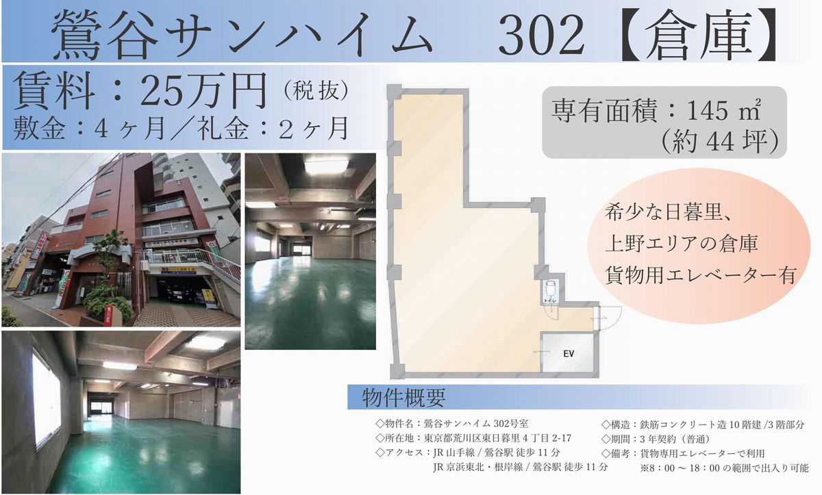 東京都荒川区東日暮里4-2-17の貸倉庫・貸工場・賃貸土地を探すなら中小企業を応援する東京貸倉庫.comでニーズに合った物件を検索してください。東京都荒川区東日暮里4-2-17の事務所付貸倉庫、クレーン付、店舗倉庫、工業専用地域等、何なりと営業担当者にお申し付けください。その他、東京都荒川区東日暮里4-2-17の貸し倉庫・貸し工場・賃貸土地を貸したい方には無料にて査定・掲載いたしますので当社のオーナーサポートシステムをご利用ください。東京都荒川区東日暮里4-2-17で貸倉庫・貸工場・賃貸土地を契約のテナント様には貸し倉庫・貸し工場の設計変更、造作のご相談も承ります。貸倉庫・貸工場・賃貸土地の移転・新規開設は東京エリア最大級、新着情報満載、東京貸倉庫.com!