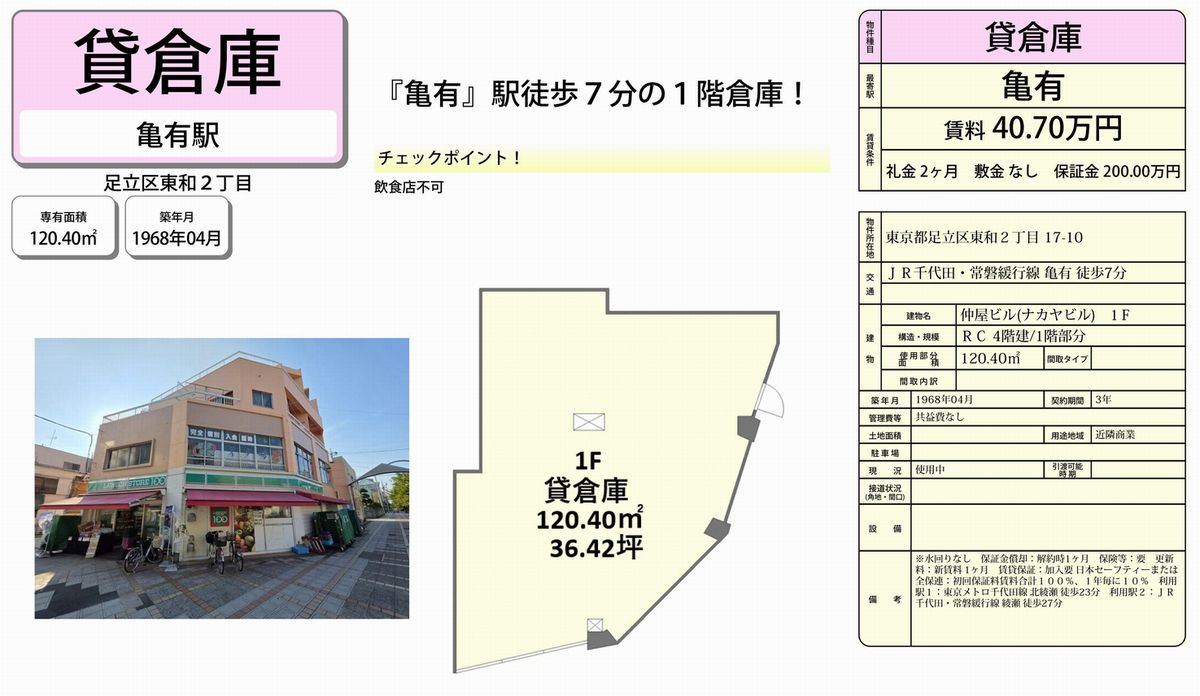 東京都足立区東和2-17-10 (亀有) 仲屋ビル 詳細データ