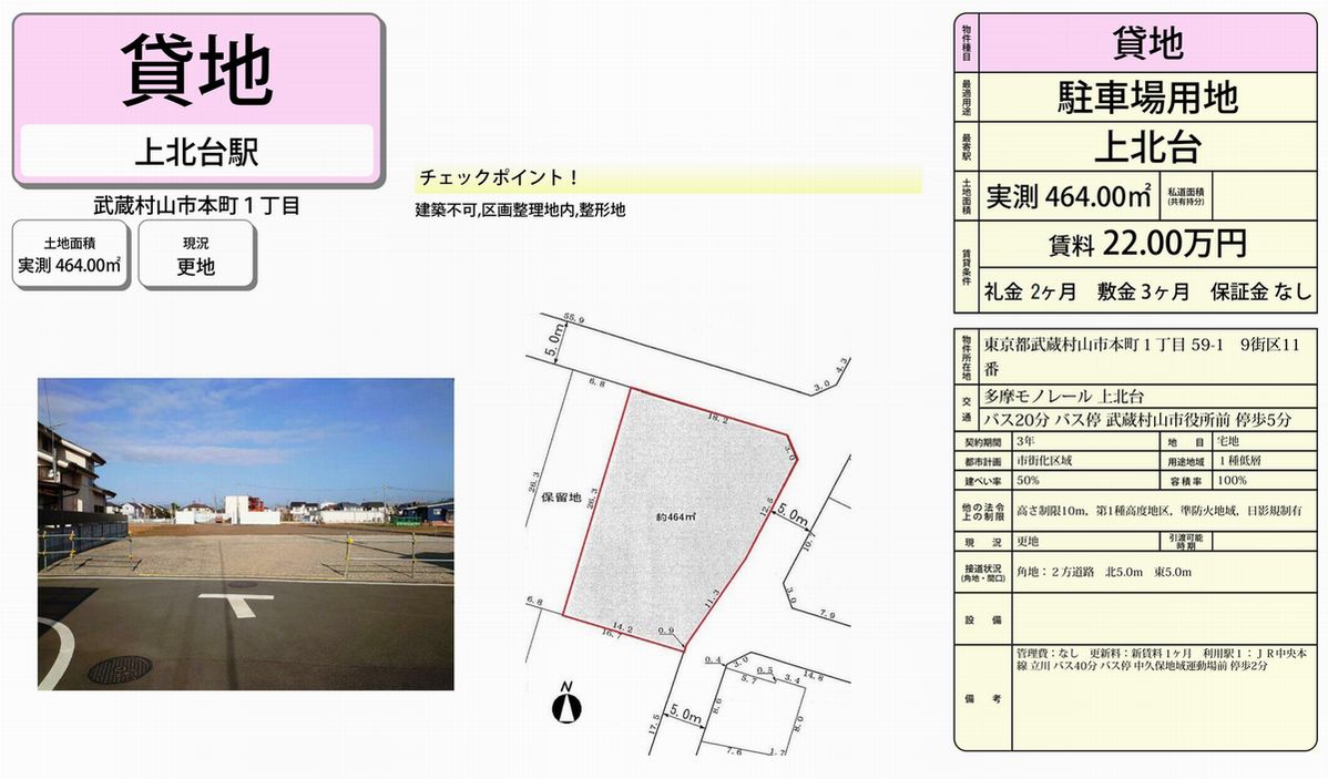 東京都武蔵村山市本町1-59-1 (上北台) 上北台 貸地 詳細データ