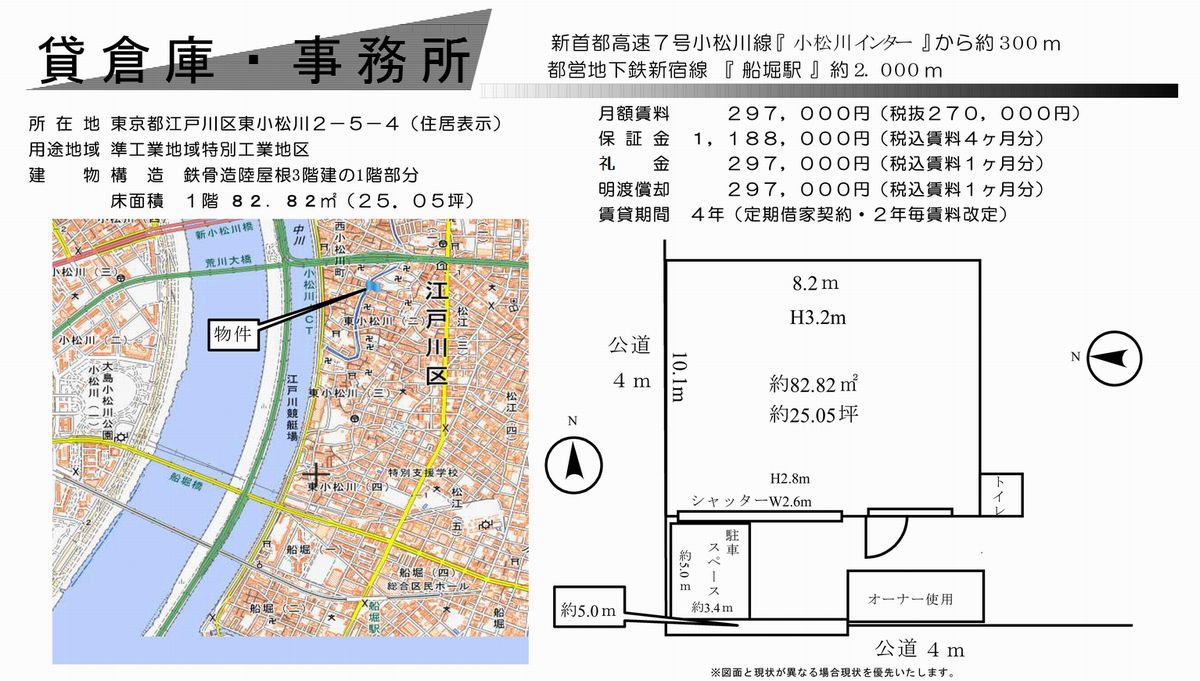 東京都江戸川区東小松川2-5-4 (船堀) 船堀 倉庫 詳細データ
