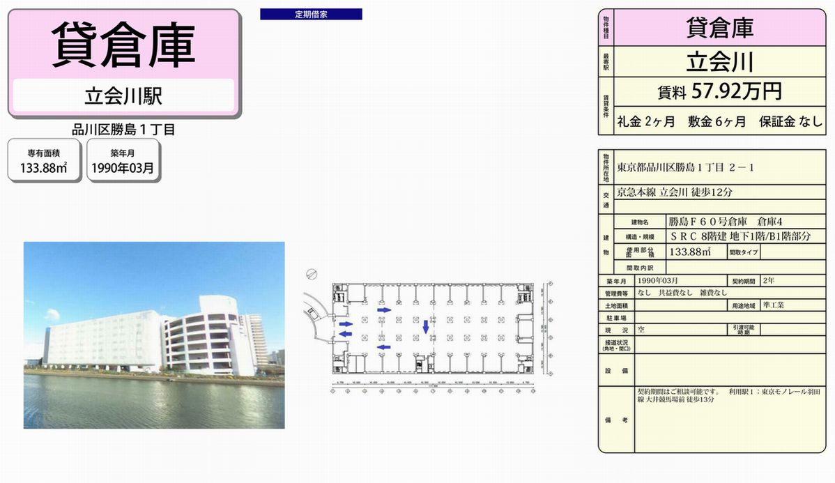 東京都品川区勝島1-2-1 (立会川) 勝島F60号倉庫 詳細データ