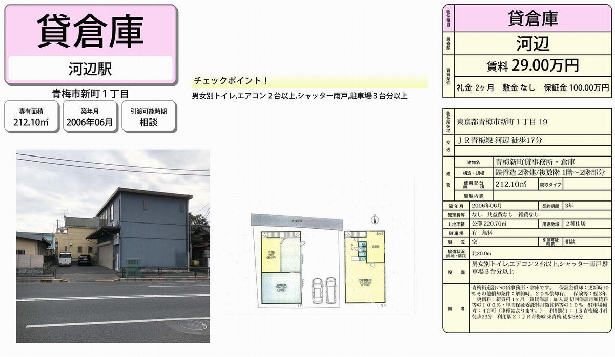 東京都青梅市新町1-19 (河辺) 河辺 倉庫 詳細データ