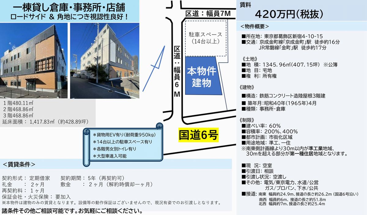 東京都葛飾区新宿4-10-15 (金町) 金町 倉庫 詳細データ
