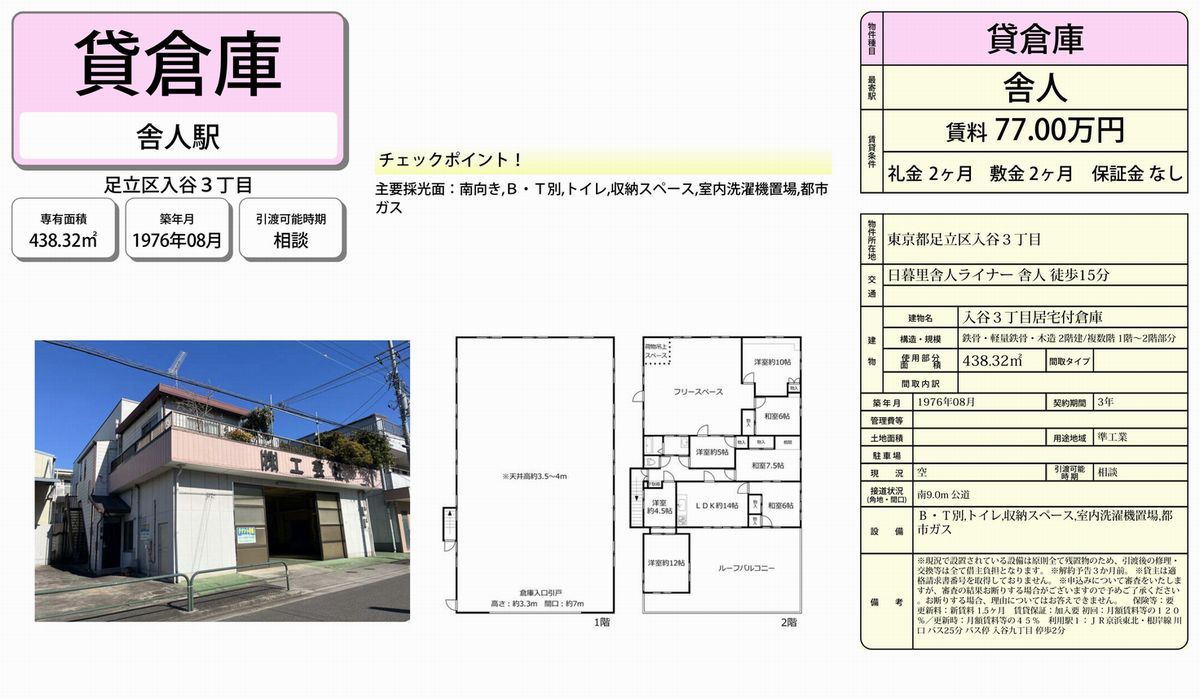 東京都足立区入谷3-15-2 (舎人) 舎人 倉庫 詳細データ