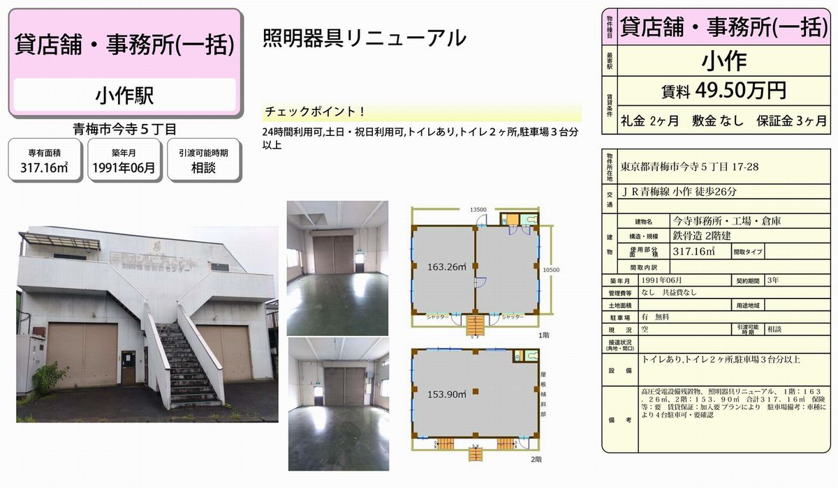 東京都青梅市今寺5-17-18 (小作) 小作 倉庫 詳細データ
