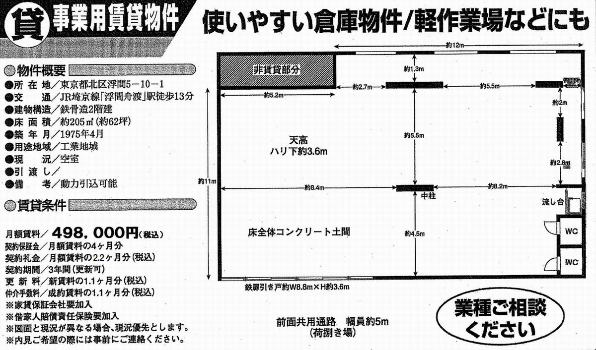 | 物件名 | 浮間舟渡 倉庫 |