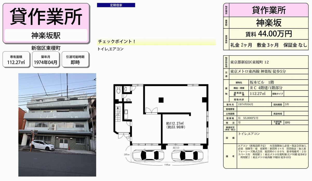 東京都新宿区東榎町12 (神楽坂) 坂本ビル 詳細データ