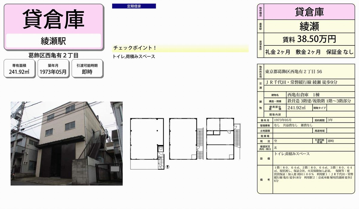 東京都葛飾区西亀有2-56 (綾瀬) 西亀有倉庫 詳細データ