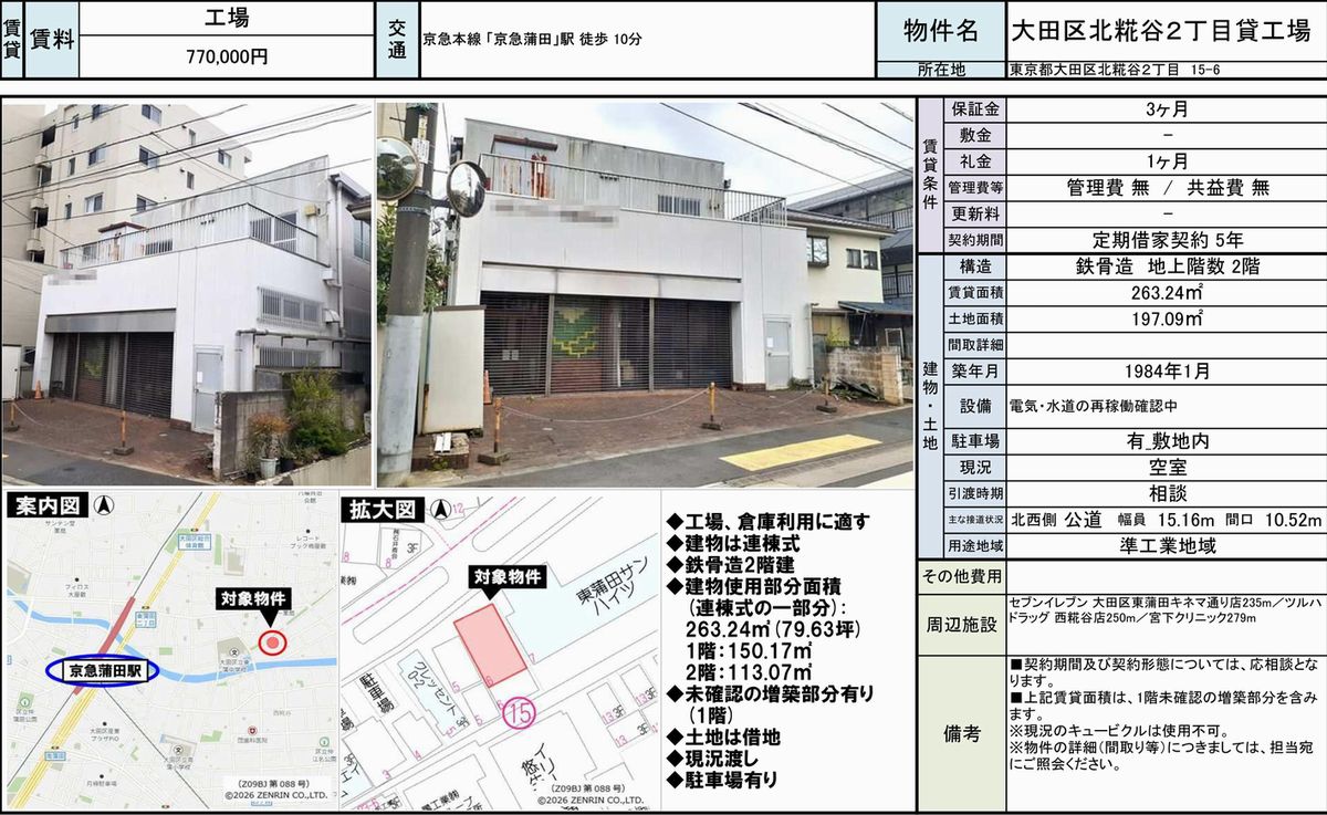 東京都大田区北糀谷2-15-6 (京急蒲田) 京急蒲田 倉庫 詳細データ