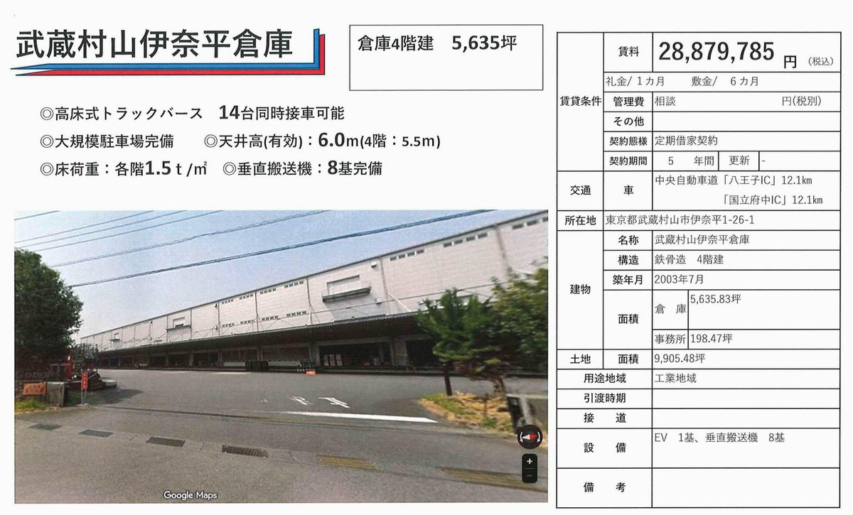 東京都武蔵村山市伊奈平1-26 (武蔵砂川) 武蔵砂川 倉庫 詳細データ