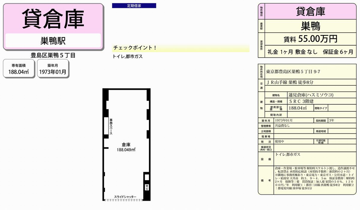 東京都豊島区巣鴨5-9-7 (巣鴨) 蓮見倉庫 詳細データ