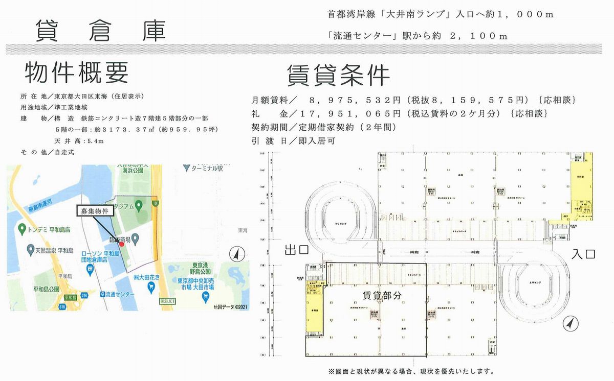 東京都大田区東海1-3-6 (流通センター) 流通センター 倉庫 詳細データ