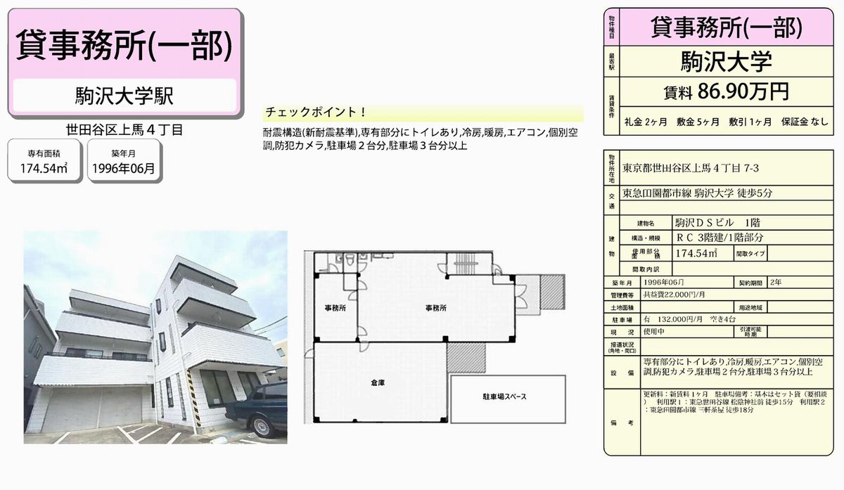 東京都世田谷区上馬4-7-3 (駒沢大学) 駒沢DSビル 詳細データ