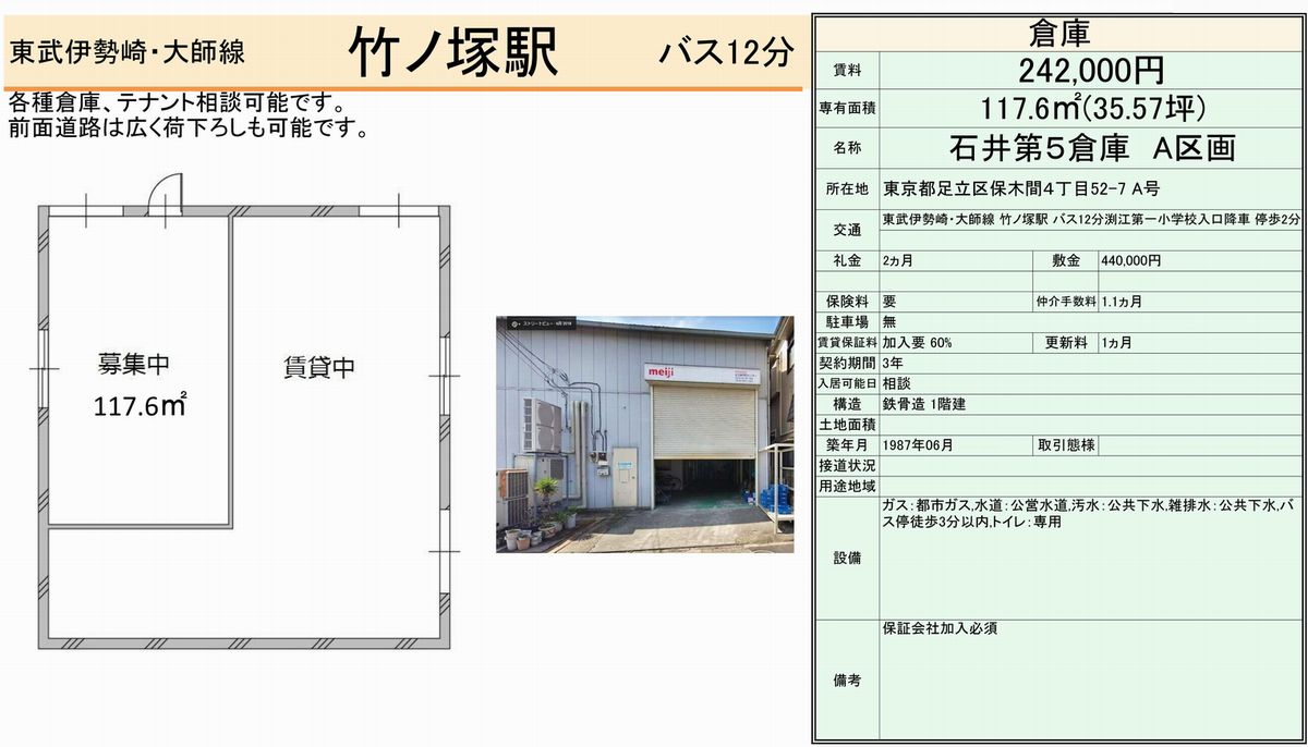 東京都足立区保木間4-52-7 (竹ノ塚) 石井第5倉庫A 詳細データ
