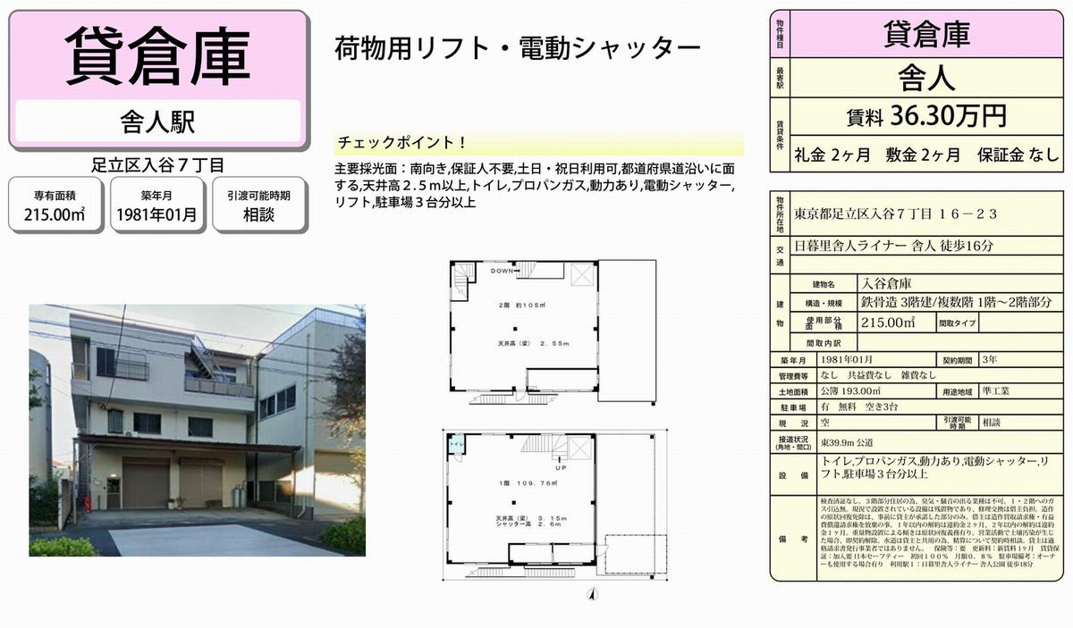 東京都足立区入谷7-16-23 (舎人) 入谷倉庫 詳細データ