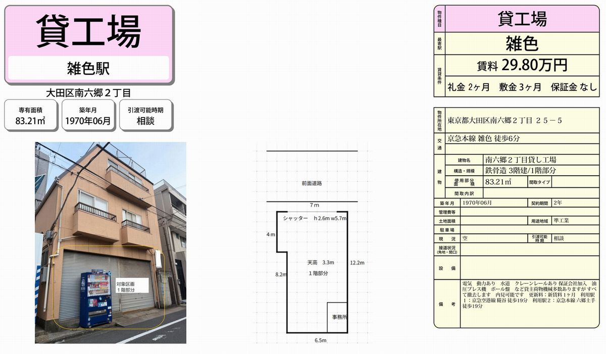 東京都大田区南六郷2-25-5 (雑色) 雑色 工場 詳細データ