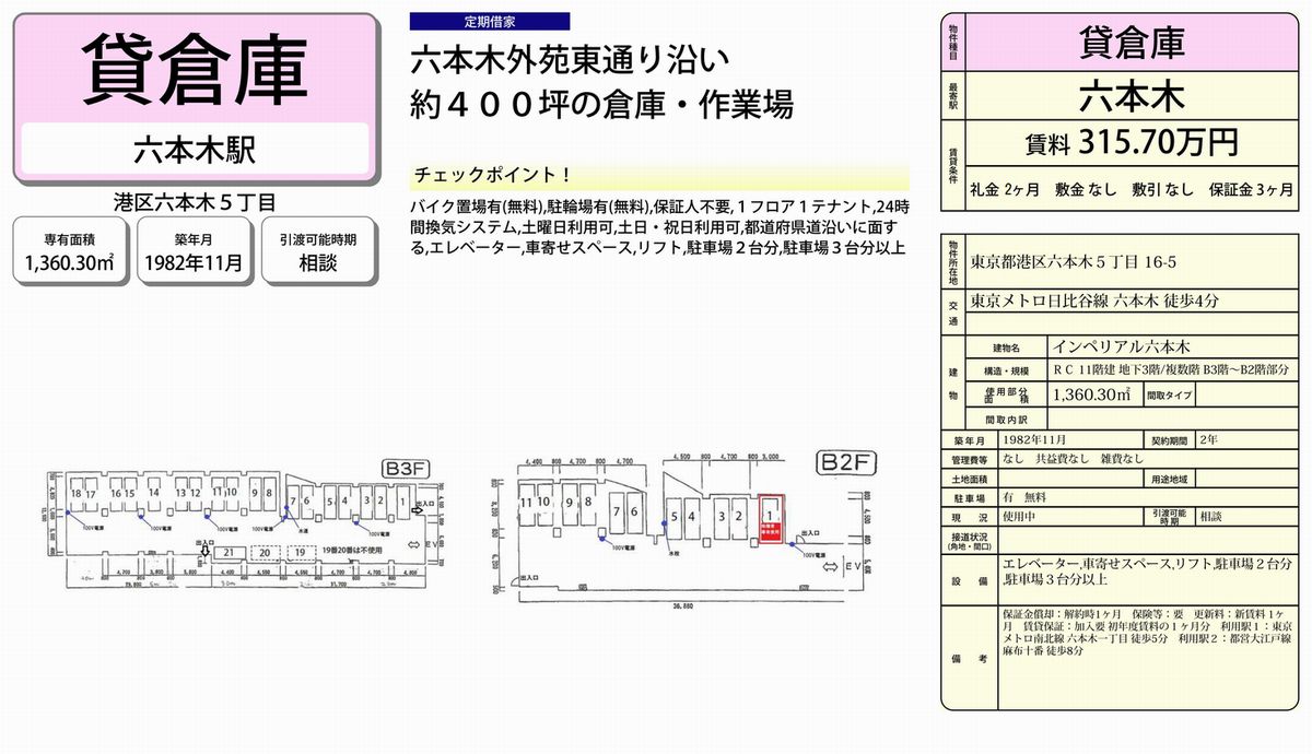 東京都港区六本木5-16-5 (六本木) インペリアル六本木 B2-B3F部分 詳細データ